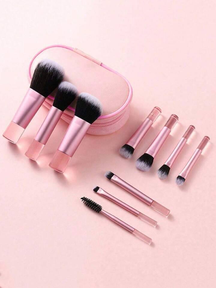 براش 10 تایی کیفی صورتی برند shine این ست براشٌ همتون باید داشته باشید تو جیب جا میشه …🩷 همه براش های لازمٌ داره … ست براش فسقلی پینترستی ده براش کاربردی با کیف ضدآب تراکم مویی بالا ضد ریزش