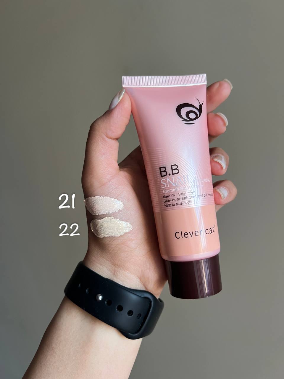 Clever cat snail bb cream حجم 60g کاورش محشره، فوق االعاده سبک و مات ماته. پوستتو یکدست میکنه ، از اون محصولاتی هست که از صبح تا شب رو پوست تکون نمیخوره، تازه عصاره حلزون داره واسه پوستت هم خیلی مفیده. •شامل دو رنگ روشن مناسب انواع پوست •حاوی ترشحات جوانساز حلزون •بافت سبک مناسب مصرف روزانه •کنترل کننده چربی و مات کننده پوست •آبرسانی و مرطوب کننده پوست •پوشاننده کامل لک ها و نواقص پوست •پیشگیری از چروک و لک شدن پوست •دارای کانسیلر برای یکدست کردن رنگ پوست •جلوگیری از آسیب اشعه ماورا بنفش به پوست •فاقد مواد مضر و ضدحساسیت والتهاب پوست این BB کرم دارای پوشش کامل و ترکیبی از ضدآفتاب، کانسیلر،مرطوب کننده، پرایمر و ترشحات جوانساز مخاط حلزون می باشد که پوششی کامل و بی نقص و طبیعی ایجاد می کند و رنگ پوست را کاملاً یکنواخت می کند و هرگونه عیوب و نواقص پوست ازجمله لک، جای جوش قرمزی ، منافذ و غیره را پنهان می کند و همچنین چربی پوست را کنترل کرده و از چرب شدن پوست و برق افتادن آرایش تان جلوگیری می کند.