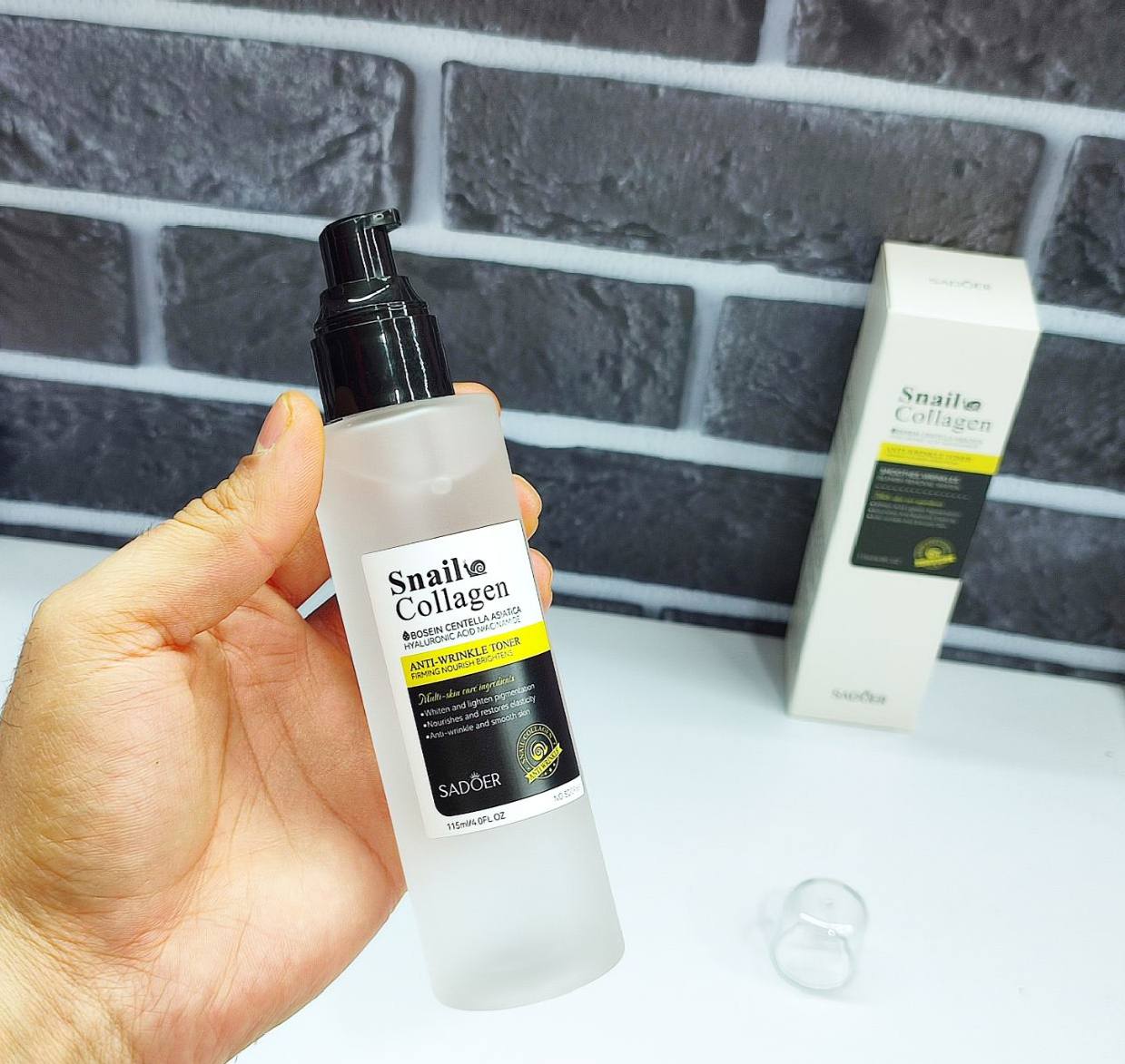 ضدچروک و سفت کننده پوست حجم ۱۱۵ میل Sadoer Snail Collagen Toner 115Ml ویژگی محصول:دارای آنتی اکسیدان فراوان ضد چین و چروک ویژگی محصول:کلاژن ساز پوست روشن کننده و سفید کننده پوست
