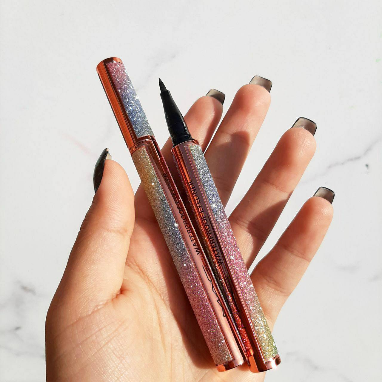 خط چشم گلیتری MAC ساعته کاملا مشکی و مات ضدآب اپلیکاتور سرش نازک و ماژیکیه و خط چشم کشیدن باهاش خیلی راحته موقع شستن و پاک کردن اصلا زیر چشم سیاه نمیکنه و خیلی راحت تمیز میشه.