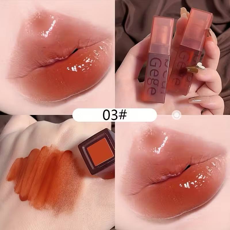 رژ مخملی برند gege bear ظاهری زیبا و شیک حالت شیشه ای روی لب دارند معروف به رژ خیس و لیپ گلاس حجم دهنده لب خشک و پوسته نمیشود رایحه فوق العاده خوشبو فاقد مواد سربی “معروف به رژ کره ای”