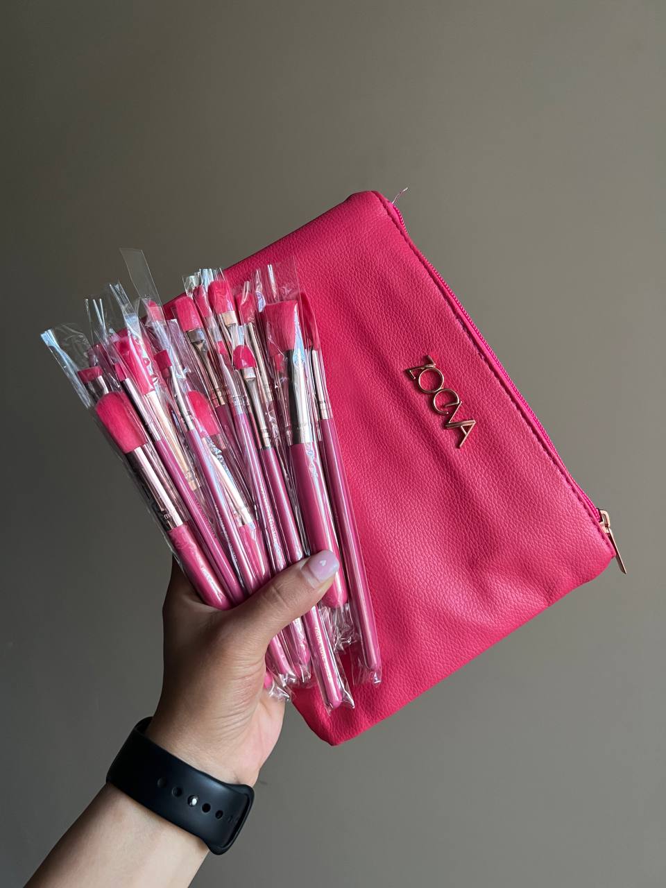 مخصوص استفاده شخصی و سالن دارها ○ 15عدد براش در یک بسته ○باکیفیت ○ساخت آلمان ○بدون ریزش ○کیف چرم زیبا و لوکس ○رنگ سرخابی