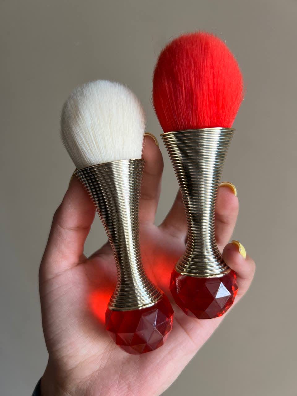 شوت رژگونه متراکم الماس براش معروف جادویی تیک تاکی متراکم براش یا شوت رژگونه و پودر فیکس هم برای رژگونه زدن مناسبه هم پودرفیکس کیفیت خیلی بالایی داره و قابل شستشوعه مناسب یه ارایش تمیز و حرفه ای وارداتی