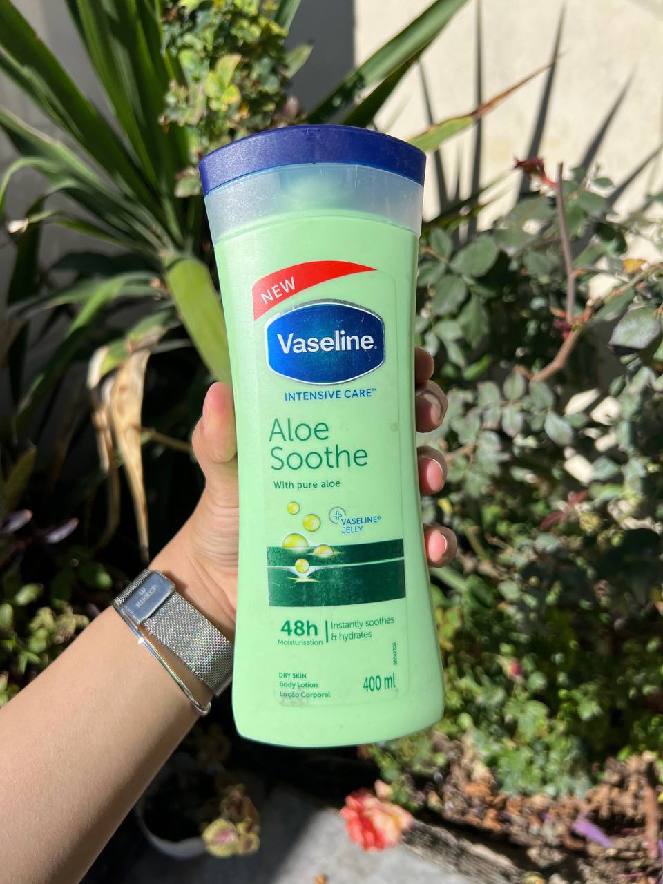 🎀 🐋مناسب همه پوستها 🐋 ترکیب غنی از آلوئه‌ورا وجود عصاره آلوئه‌ورا در این لوسیون، پوست را آبرسانی و التیام می‌بخشد و حس طراوت و خنکی را به همراه دارد. 2. ترمیم‌کننده وازلین خالص وازلین خالص موجود در این محصول، لایه‌ای محافظ روی پوست ایجاد می‌کند و به حفظ رطوبت و ترمیم خشکی پوست کمک می‌کند. 3. بافت سبک و جذب سریع این لوسیون با بافتی سبک و غیرچرب به سرعت جذب پوست می‌شود و حس چسبندگی ایجاد نمی‌کند. 4. مناسب برای انواع پوست فرمولاسیون ملایم این محصول، آن را برای استفاده روی انواع پوست، حتی پوست‌های حساس مناسب کرده است. مزایای استفاده • آبرسانی عمیق: تامین رطوبت مورد نیاز پوست برای جلوگیری از خشکی و ترک‌خوردگی. • تسکین‌دهنده: کاهش التهابات و تحریکات پوستی ناشی از خشکی