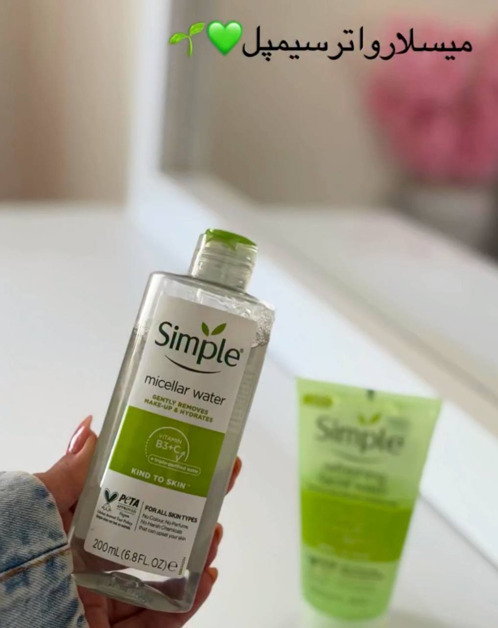 میسلارواتر سیمپل با قدرت پاک کنندگی بالایی که داره تمام آلودگی ها وچربی های اضافه ی پوست رو پاکمیکنه.