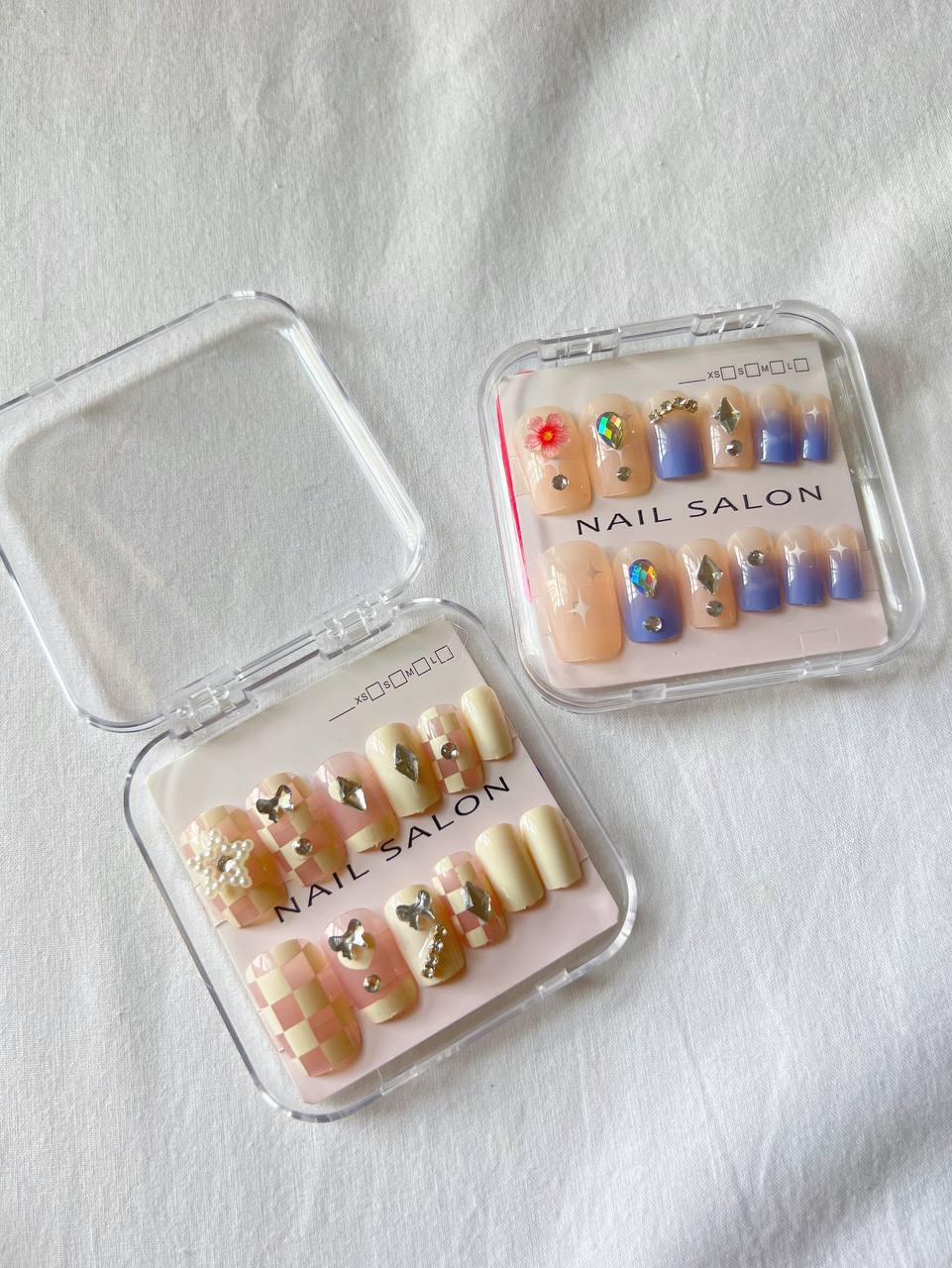 همراه با سوهان و چسب  ناخون مصنوعی با کیفیت بالا براتون موجود کردم🥲✨ ۱۲ تیکه س و از برند معروف nail salon 💕🤌🏻