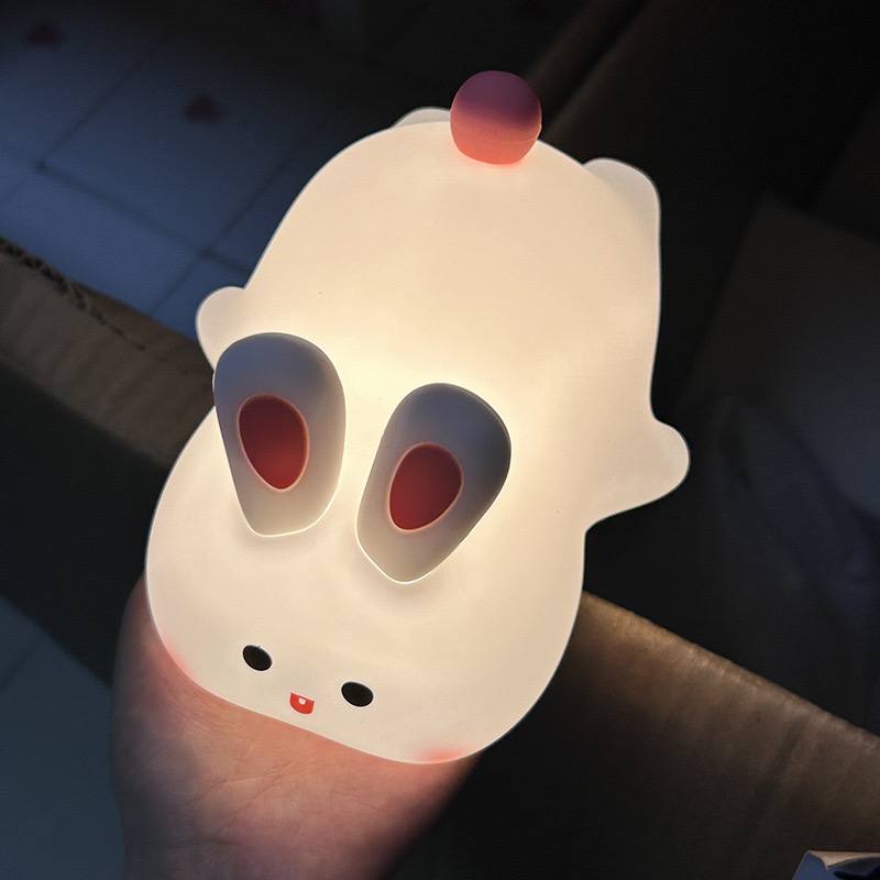 چراغ خواب نرمالو سلیکونی خرگوش دم صورتی چراغ خواب و شب خواب فانتزی سیلیکونی دکمه لمسی