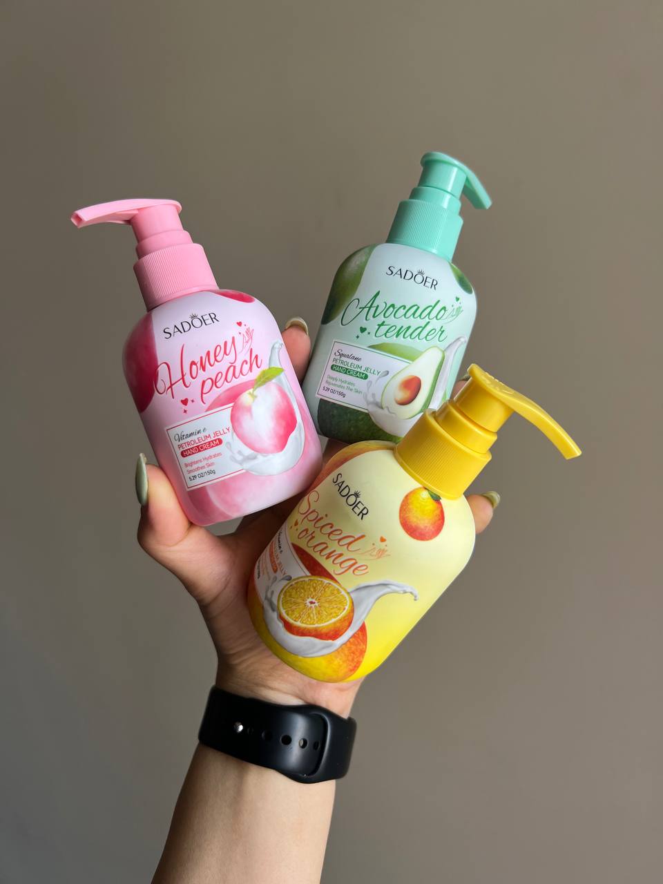 خوشبو و نرمکننده SADOER کرم دستهای خوشبو و نرمکننده SADOER نرمی و لطافتو بریز توی دستات! این کرمای خوشگل سادو با بافت سبک و جذب سریعش، هم بوشون دلبری میکنه هم پوستتو حسابی نرم و شاداب نگه میدارن، بدون یه ذره حس چربی. هر کدومشون یه ویژگی مخصوص دارن: